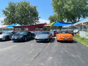 Upon our arrival, we were greeted By Ed and directed to a parking area. Tables were set up with a BBQ dinner from Staxx in Frankfort. After dinner, door prizes were drawn with Gary Whitaker winning the grand prize, a trip to the Porsche Experience in Atlanta!